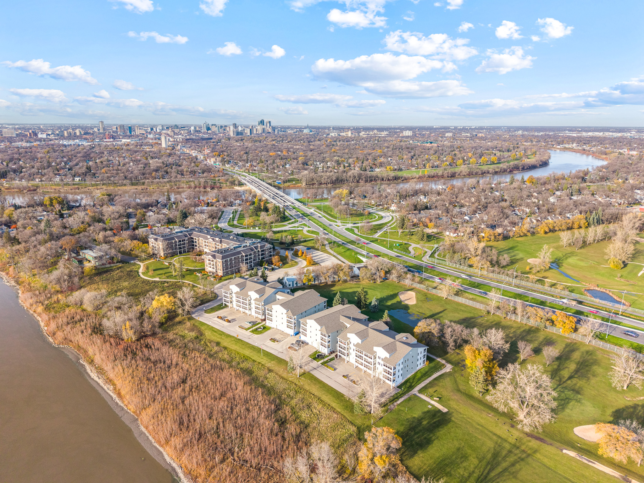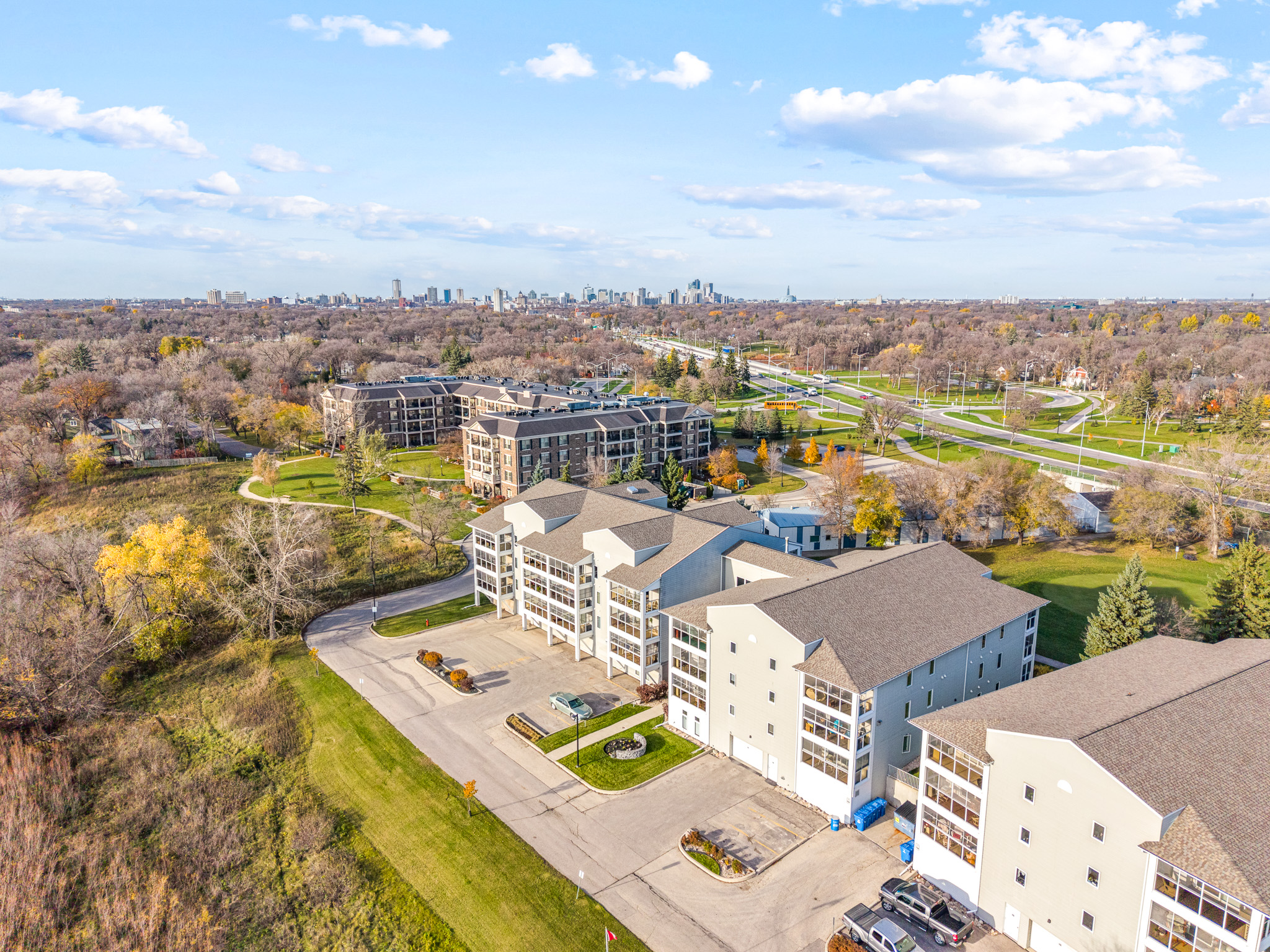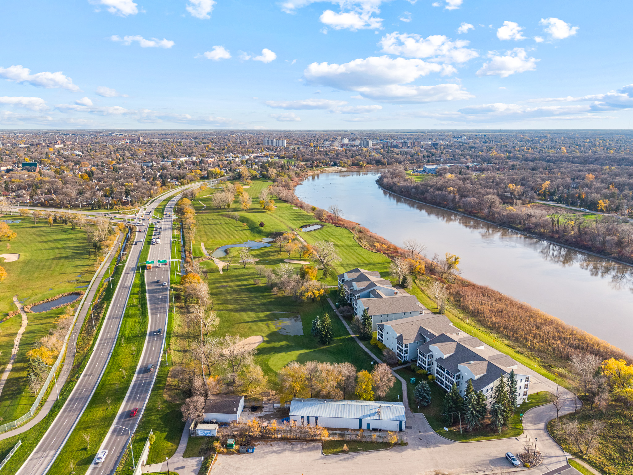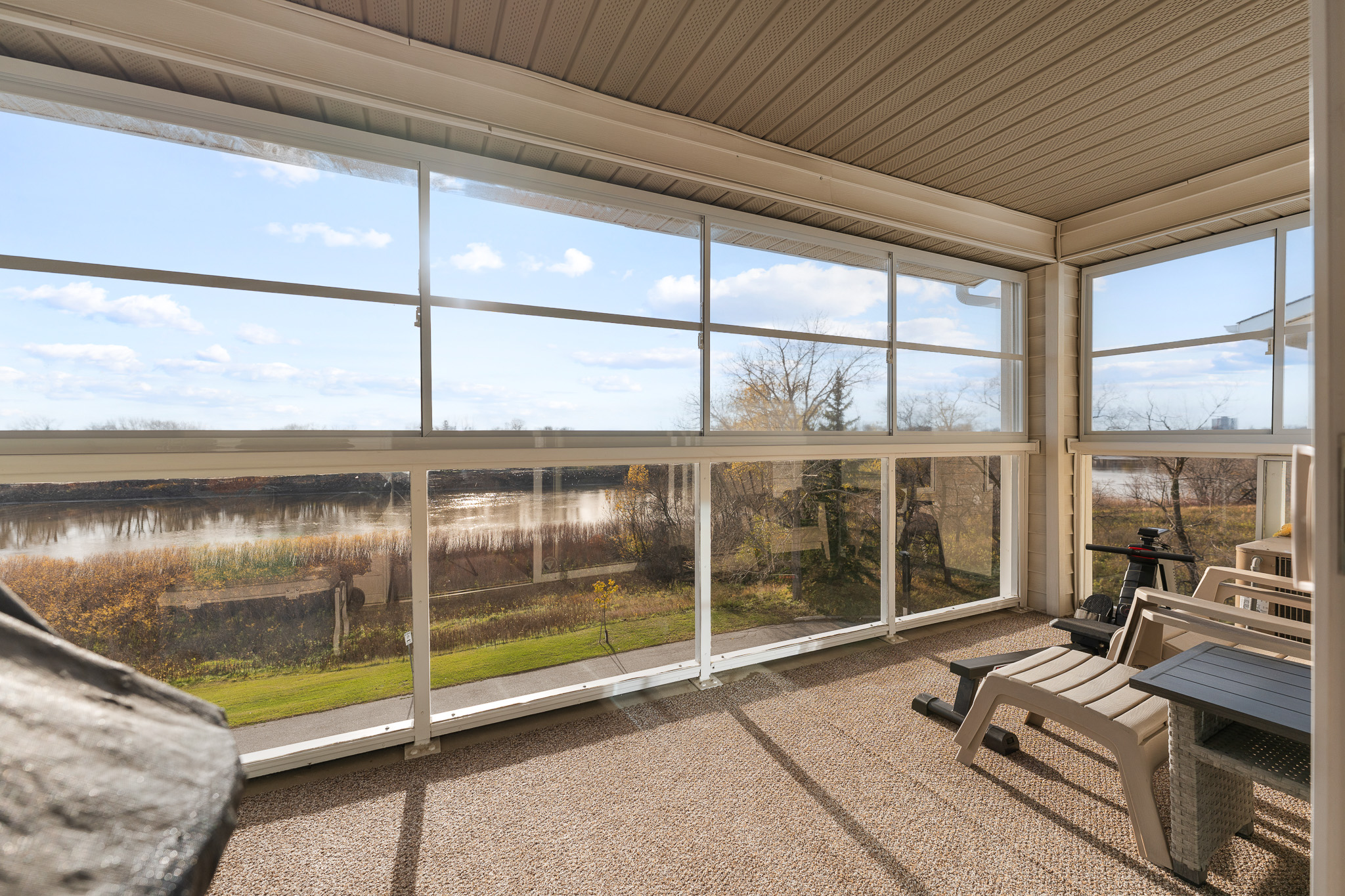 Great apartment style condominium with west exposure views over the Red River. The Royal Edgewater is adjacent to the Canoe Club golf course in St Vital. This property is a top floor corner suite that is larger than most units at 1,508 square feet. This condo has 2 indoor parking stalls plus storage locker and yes the building does have an elevator. Very spacious living area with tile front electric fireplace, laminate floors and patio doors to a 3 season sunroom. Living and dining room are wide open and offer great space for family events. Dining room with built in buffet and cabinets plus display space. Kitchen with white raised panel cabinetry, stainless steel appliances, counter height breakfast bar, large eating area with even more storage cabinetry. Primary bedroom with walk thru closet, 3 piece ensuite plus enclosed 3 season sunroom. Main bathroom with large jetted tub. Main floor laundry also has great storage. Also features central air conditioning. Shingles and elevators have been updated. Vinyl siding, aluminum soffits and fascia.