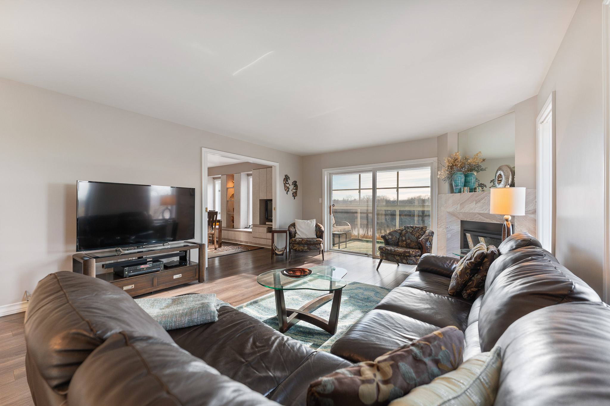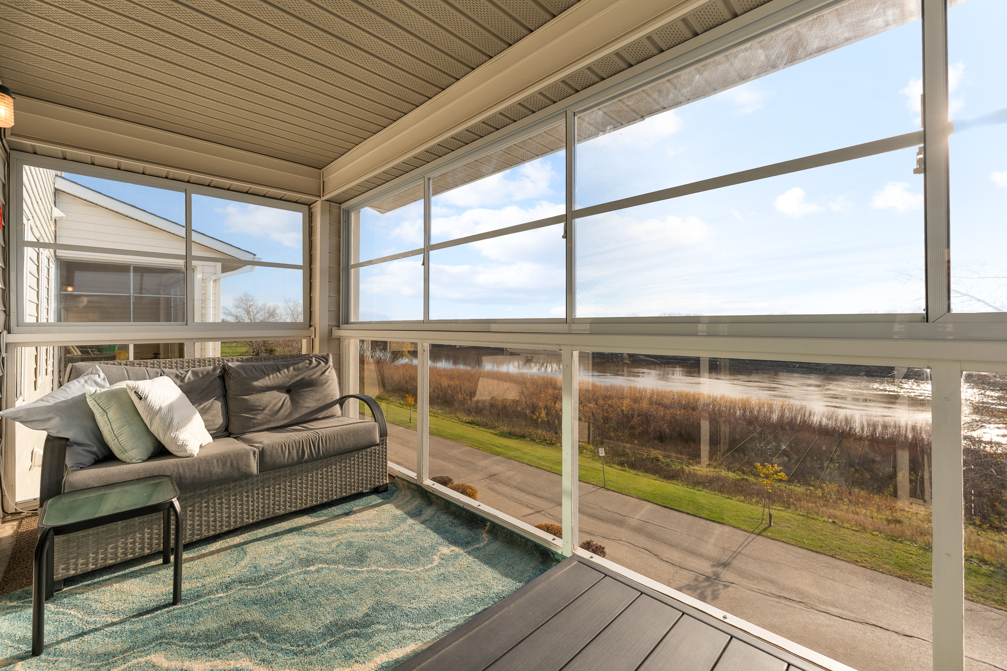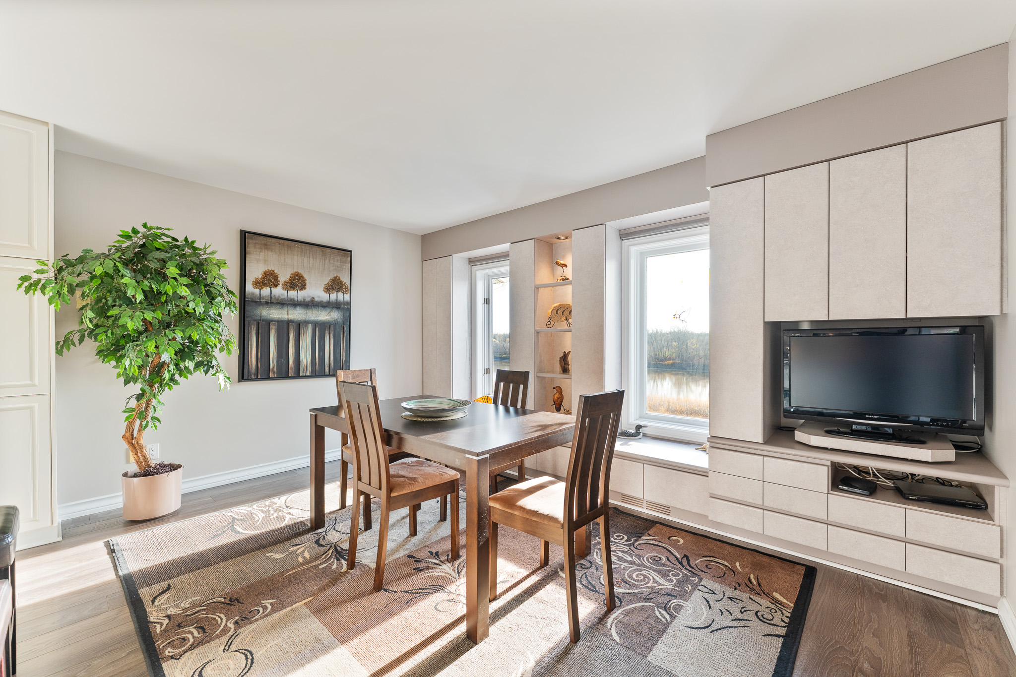 Great apartment style condominium with west exposure views over the Red River. The Royal Edgewater is adjacent to the Canoe Club golf course in St Vital. This property is a top floor corner suite that is larger than most units at 1,508 square feet. This condo has 2 indoor parking stalls plus storage locker and yes the building does have an elevator. Very spacious living area with tile front electric fireplace, laminate floors and patio doors to a 3 season sunroom. Living and dining room are wide open and offer great space for family events. Dining room with built in buffet and cabinets plus display space. Kitchen with white raised panel cabinetry, stainless steel appliances, counter height breakfast bar, large eating area with even more storage cabinetry. Primary bedroom with walk thru closet, 3 piece ensuite plus enclosed 3 season sunroom. Main bathroom with large jetted tub. Main floor laundry also has great storage. Also features central air conditioning. Shingles and elevators have been updated. Vinyl siding, aluminum soffits and fascia.