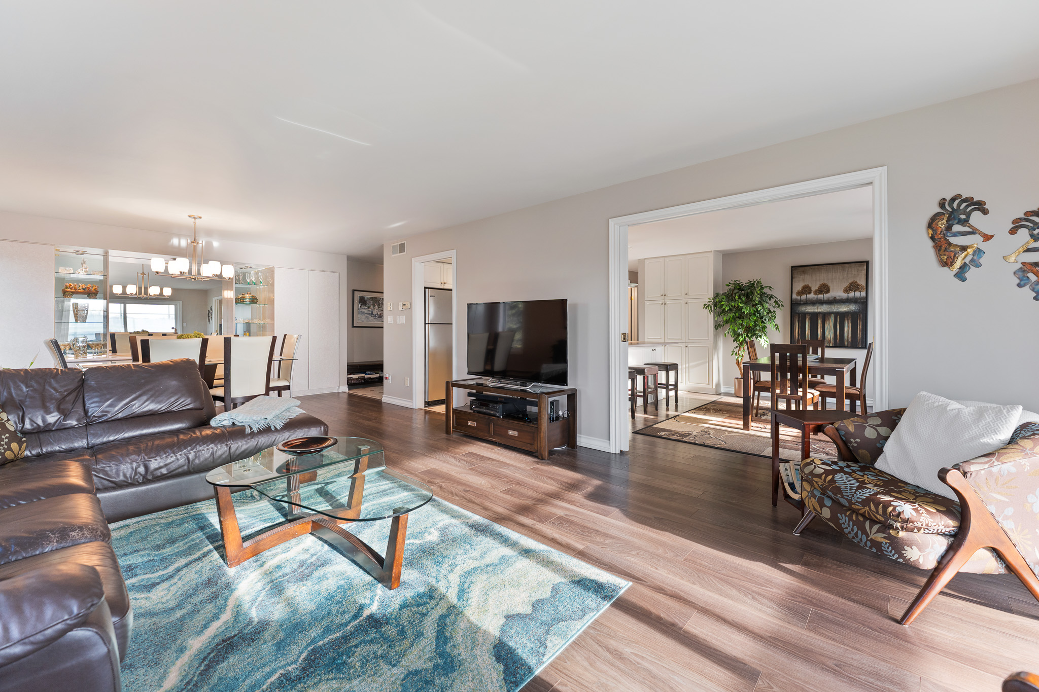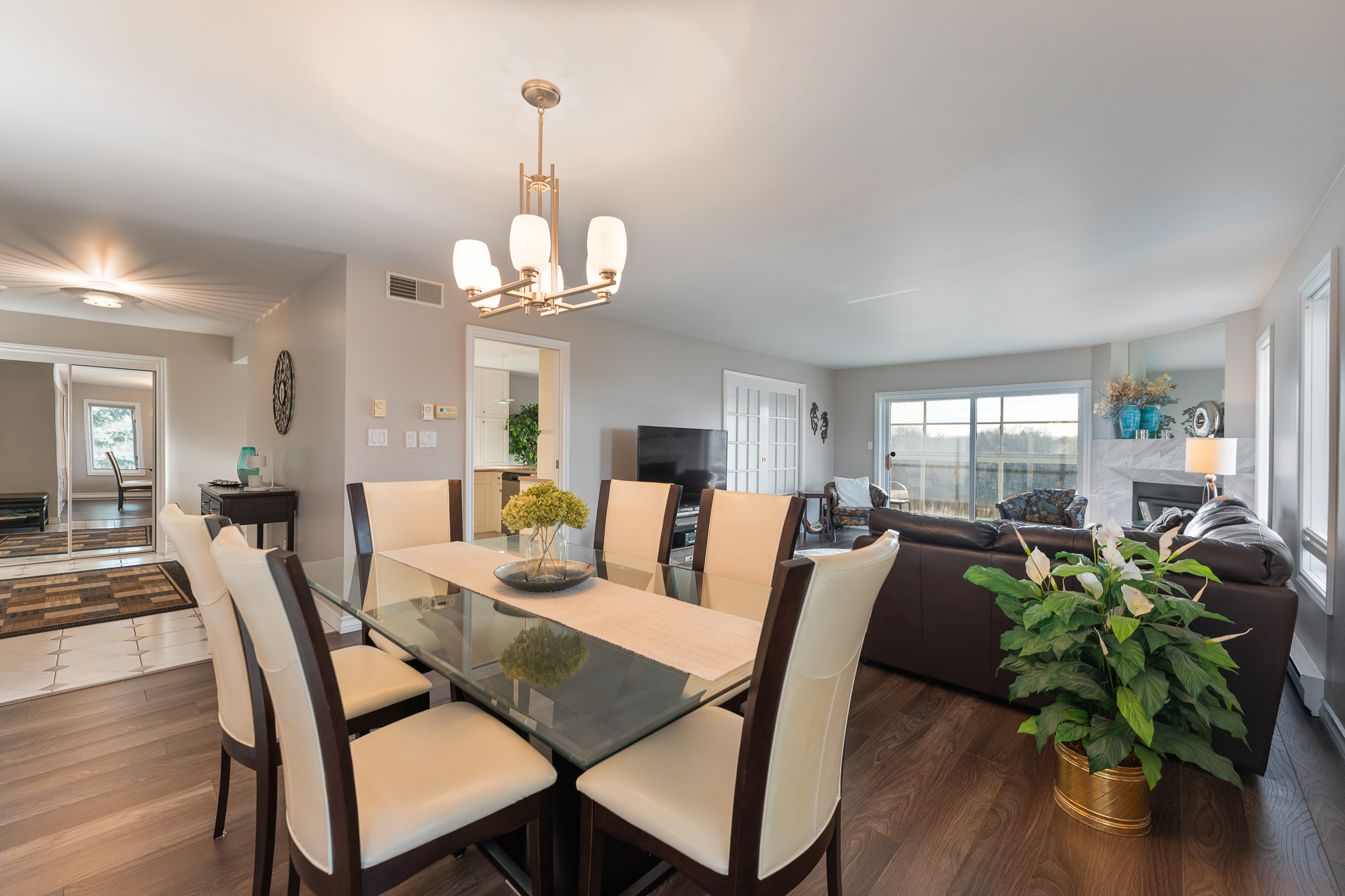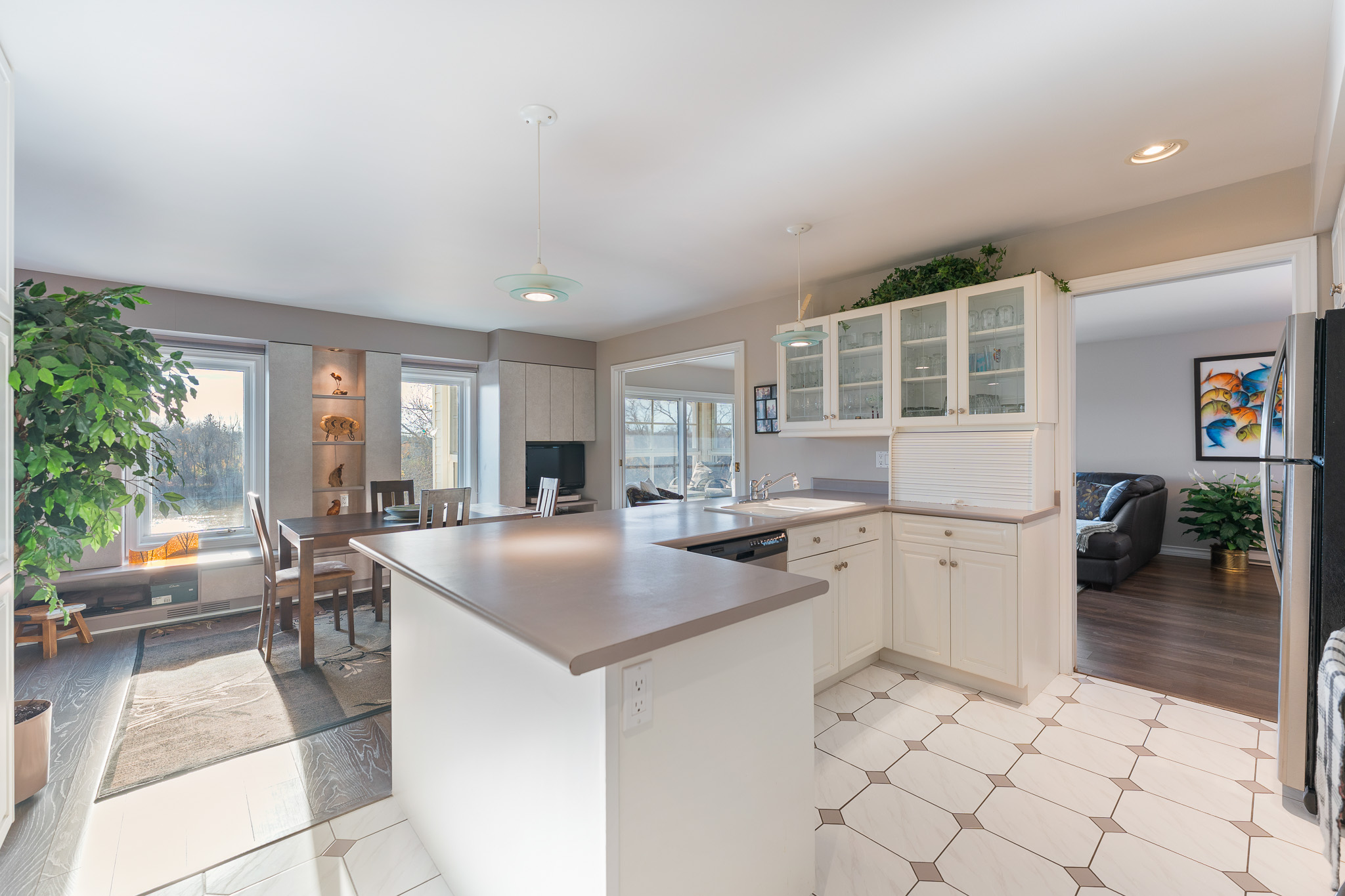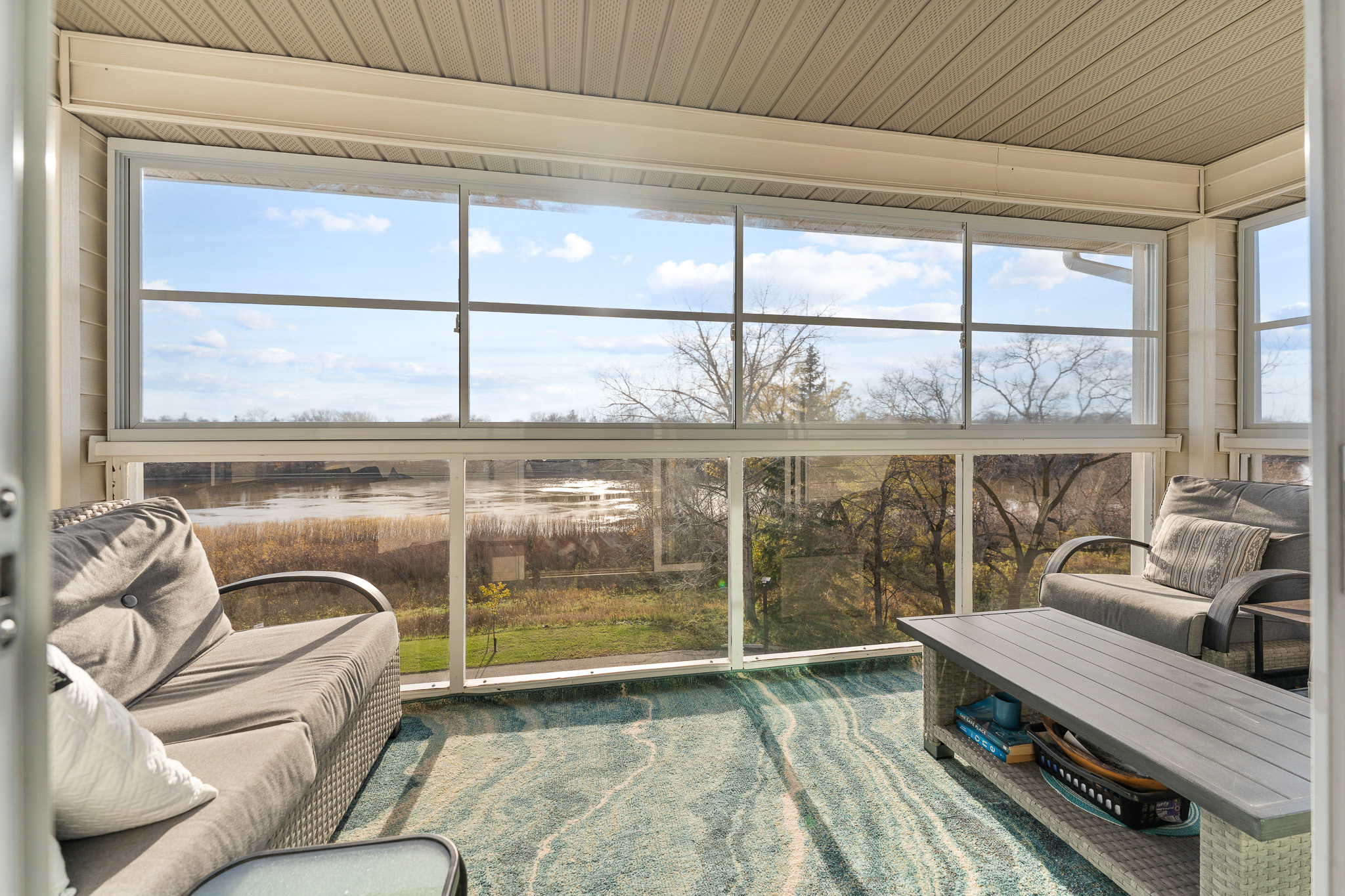 Great apartment style condominium with west exposure views over the Red River. The Royal Edgewater is adjacent to the Canoe Club golf course in St Vital. This property is a top floor corner suite that is larger than most units at 1,508 square feet. This condo has 2 indoor parking stalls plus storage locker and yes the building does have an elevator. Very spacious living area with tile front electric fireplace, laminate floors and patio doors to a 3 season sunroom. Living and dining room are wide open and offer great space for family events. Dining room with built in buffet and cabinets plus display space. Kitchen with white raised panel cabinetry, stainless steel appliances, counter height breakfast bar, large eating area with even more storage cabinetry. Primary bedroom with walk thru closet, 3 piece ensuite plus enclosed 3 season sunroom. Main bathroom with large jetted tub. Main floor laundry also has great storage. Also features central air conditioning. Shingles and elevators have been updated. Vinyl siding, aluminum soffits and fascia.