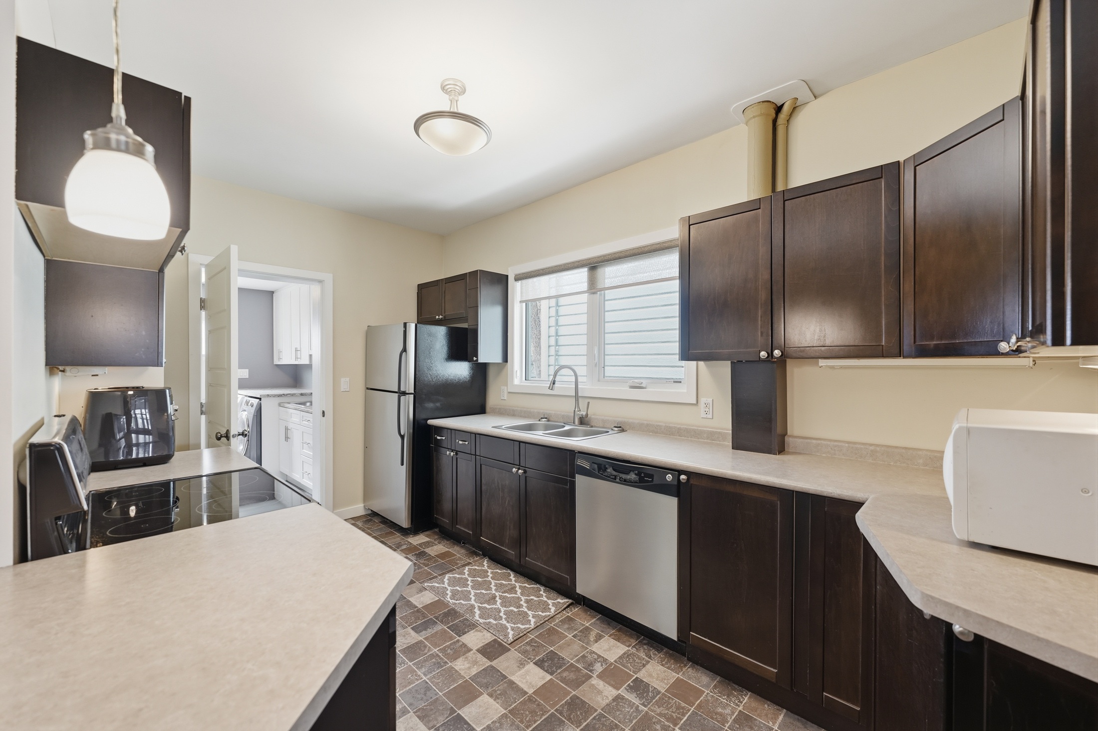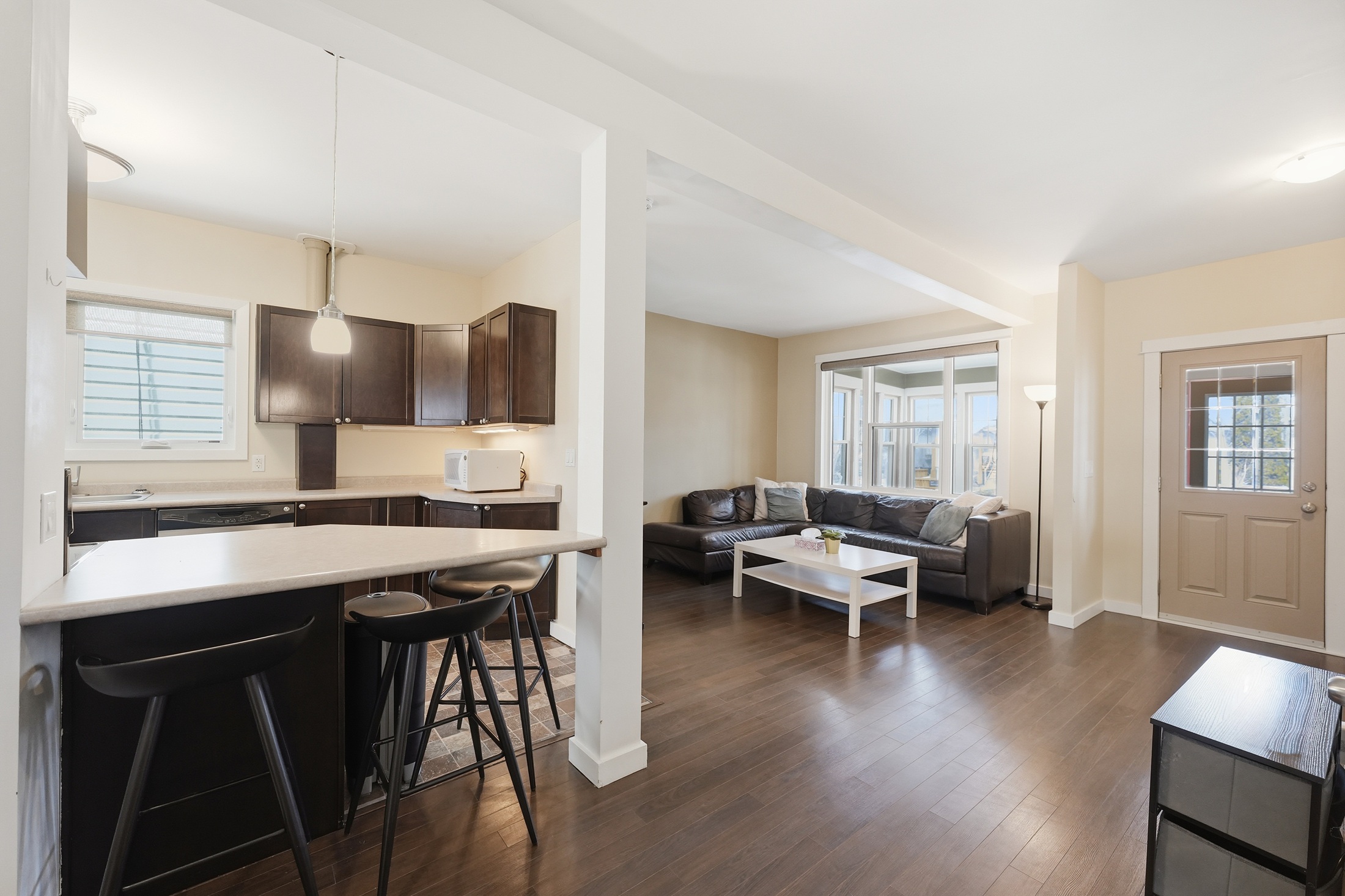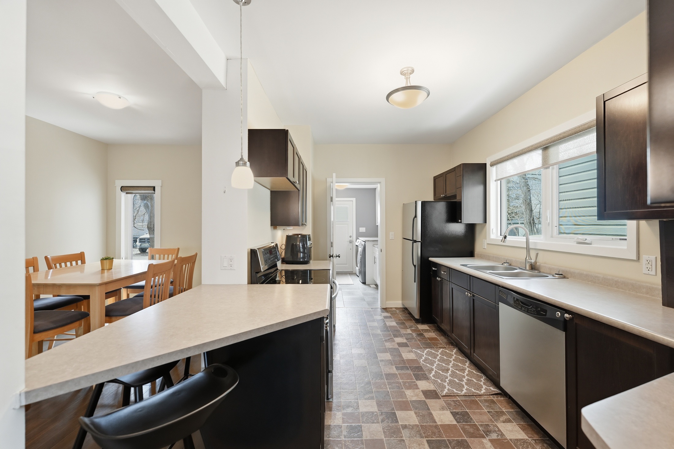 Great Corydon Village location for this 4 bedroom, 2 full bathroom home. Extensive upgrades over the last 10 years including a fantastic full bathroom and main floor laundry addition that just makes living here so much better than similar style homes. Newer modern kitchen with maple cabinetry, stainless steel appliances including built in dishwasher, double sinks, pendant light over breakfast bar counter. Laminate floors in spacious living and dining room. Traditional front porch with upgraded windows with screens. 3 second floor bedrooms all with laminate floors including one of the 2 primary bedroom options. Modern 4 piece bathroom. Upper level with the 4th bedroom with walk in double closet also has potential for an office area plus the ceiling has been fully insulated with spray foam. Upgraded wiring plus 200 amp electrical, newer "home run" style plumbing supply, large Marathon HWT, shingles on house and addition 2015, mostly newer quality fiberglass windows. Parking for 2 cars plus storage shed. Close walk to Corydon and it's restaurants and shops. Buy this home with confidence!
